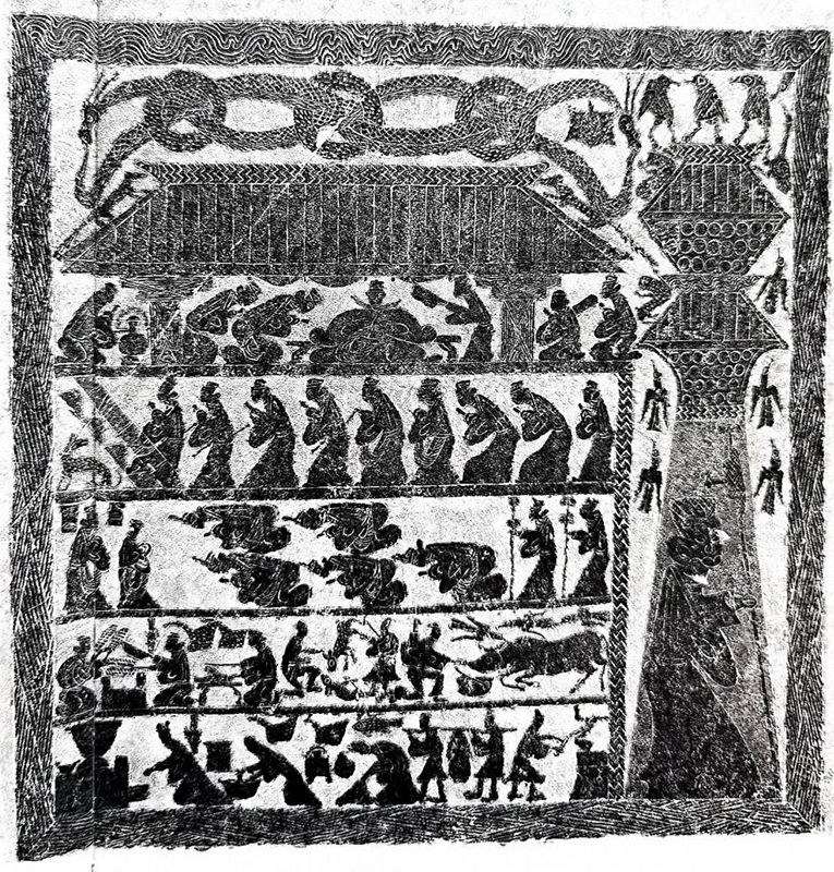 漢畫像石是一部繡像的漢代歷史,將現世生活、歷史故事、神話幻想并陳,原始圖臆、儒家教義、神仙思想共處,充滿了對現實生活的眷戀和對未來世界的希翼,生動地再現了漢代社會生活的各個方面,形成了一部石上史詩。