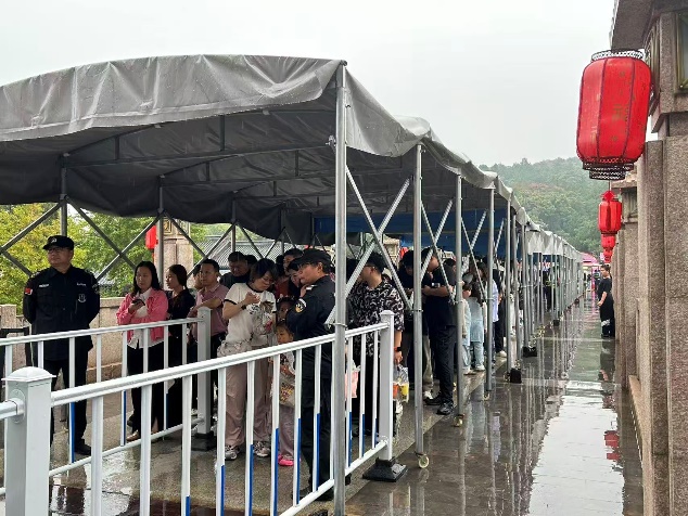 國(guó)慶假期期間,徐州正值秋雨綿綿,然而多變的天氣也無(wú)法抵擋游客激昂的參觀熱情,游客在館前排起了長(zhǎng)龍,文明有序的參觀。