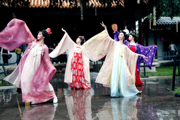 雙節(jié)期間,徐州博物館協(xié)同兩大特展和乾隆行宮延長(zhǎng)開(kāi)放時(shí)間,將每日閉館時(shí)間由17:00延后至20:00,以更充裕的開(kāi)放時(shí)間服務(wù)觀眾。同時(shí)乾隆行宮內(nèi)開(kāi)展了“徐博之夜”漢服巡游、舞蹈快閃活動(dòng),游客在景區(qū)指定路線沿途可觀賞舞蹈演員身著華美漢服,以快閃的形式律動(dòng)身姿展現(xiàn)絕美的漢舞古韻,互動(dòng)拍照留下精彩的瞬間。在霓虹燈的映襯下,游客輕松夜游徐州彭城夜。