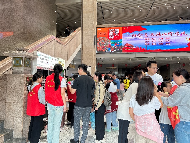 徐州博物館假期客流密集,為緩解博物館講解壓力、提升游覽體驗(yàn),我館組織社會(huì)志愿者、黨員志愿者、銀發(fā)志愿者服務(wù)隊(duì)的260余位志愿者在展廳、乾隆行宮等展區(qū)向游客講解徐州歷史文化。并聯(lián)合各類志愿服務(wù)力量投入在一線窗口崗位積極參與秩序維護(hù)疏導(dǎo)、咨詢解答、做好各項(xiàng)游客服務(wù)工作和文明旅游工作。