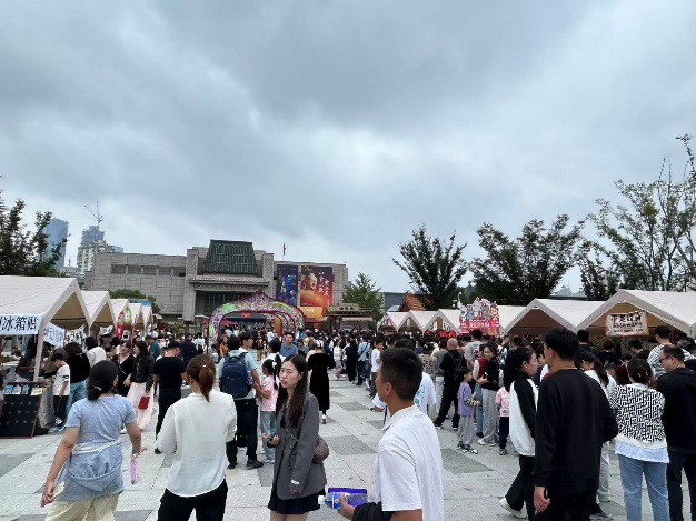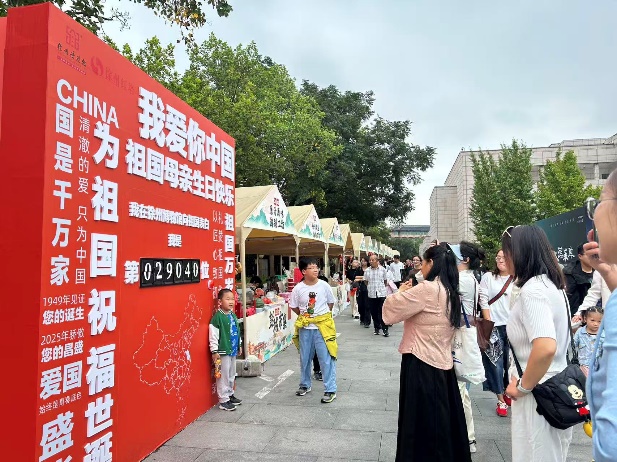 在游覽中也要滿足游客的口腹之欲,我館圍繞非遺文創(chuàng)主題展示徐州特色美食,糖畫、烤串、徐博卷、文創(chuàng)雪糕、徐州米線,徐州香包、徐州剪紙、文創(chuàng)冰箱貼等多種具有徐州特色的伴手禮以逛集市賞文化吃美食的形式來(lái)擴(kuò)大游客消費(fèi)引流效應(yīng),在獵奇的消費(fèi)中感受假期生活的趣味與輕松。并在集市中設(shè)立愛(ài)國(guó)表白墻,吸引數(shù)萬(wàn)名游客打卡祝福祖國(guó)生日快樂(lè),昌盛永駐。